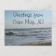 Pretty beach and sand postcard to send to someone special while on vacation to say hello from Cape May, NJ. Crushing waves into the sandy beach at Cape May. Wish You Were Here is written in white text in the sand. Leave wording as is, or personalise. Photograph taken during a day trip with my mother. Lovely quaint town, with pretty lighthouse, U.S.S. Atlantus shipwreck at sea, gift shops, beach and more. Original Photography Design © TamiraZDesigns.