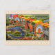 This Houston vintage postcard reproduction features large letters filled with iconic images of Houston.