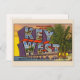 This Key West vintage postcard reproduction features large letters filled with iconic images of Key West Florida.