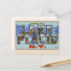 This vintage postcard reproduction features large letters filled with iconic images of Lake Placid, New York.
