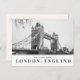 Send your greetings from the bustling city of London with this vintage-style Tower Bridge postcard. The black and white photograph captures the iconic bridge against a cloudy sky, making for a timeless image. The front reads "Greetings from London," while the back is custom-designed to look like a realistic reproduction of an old postcard, complete with space for your message and address. Perfect for travelers, collectors, or anyone who loves the charm of vintage postcards.