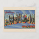 This Madison Wisconsin vintage postcard reproduction features large letters filled with iconic images of Madison Wisconsin.
