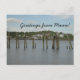 Rustic poles stick out of the water in front of this little Maine town. Customisable title. Part of my Maine Gift Store; stores in Maine are invited to buy these products in bulk to sell in their stores.