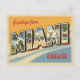 Send a piece of sun-drenched nostalgia with this vintage-style postcard featuring Miami Beach. The large, retro-inspired lettering highlights classic beach scenes, from models on the sand and palm trees swaying in the breeze. With its bold colours and classic design, this postcard captures the laid-back, retro charm of a quintessential beach vacation. It's a perfect memento for visitors or anyone who loves the lively, vintage spirit of Miami Beach.