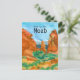 Greetings from Moab postcard featuring the southwest desert landscape in Utah and red rock formations with patches of sagebrush and a bright blue-sky hand painted with watercolor. Edit the text to fit your needs and keep in touch with friends and family. Try this design on other items Zazzle makes such as a tile, poster, stickers and more. Scroll to the bottom of the page to see examples.