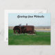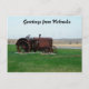 Greeting from Nebraska - old farming equipment and modern wind turbines near the Platte River, Nebraska