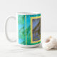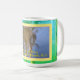 Greetings from Point Pleasant Beach, N.J. Personalise for any town. Written in tropical sunny yellow text within a yellow pink frame of three palm trees with fronds blowing in the ocean breeze with pretty blue sky in the centre. Background has tiled blue green hues. Click customise to increase or decrease the font size to fit your town, if choosing another town. Keep image as is, or insert your own in centre frame. Cool keepsake for anyone who loves the beaches and boardwalks and vacationing down the shore. Order in bulk and save. Original Photography design © TamiraZDesigns. Visit my store for more Original designed items via: www.zazzle.com/tamirazdesigns