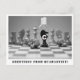 Greetings from Quarantine postcard. Chess pieces and hand sanitizer on chessboard illustrating global struggle against novel covid-19 outbreak.