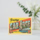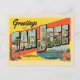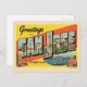 Send a classic greeting with this vintage-style postcard featuring San Jose, California. The large, retro-inspired lettering highlights iconic city landmarks inside each letter, from historic buildings to the stunning arched bridge. This design, with its aged look and vibrant colours, perfectly captures the nostalgic charm of classic American travel. It's an ideal memento for visitors or anyone who wants to share a piece of San Jose's rich history and sunny appeal.
