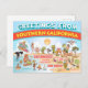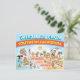 Bright and charming greeting card shows a whimsical cartoon of Southern California - cute characters enjoy the warm California sun who shines high above it all.