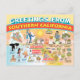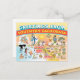 Bright and colourful scene offers a spectacular view of Southern California - wacky characters frolic on the beach and desert of SoCal showcasing Los Angeles, Orange County, San Diego, Santa Barbara, Riverside, Palm Springs, El Centro, Salton Sea, Anza Borrego and Joshua Tree parks as well as the border cities of Tijuana, Tecate and Mexicali. This charming scene has it all – a surfer hangs ten while a killer whale leaps out of the water, zoo animals greet the tourists, wine lovers make a toast as a hiker is noticed by a UFO and much more…