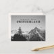 Greetings from Switzerland black and white postcard from The Swiss Alps.