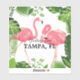 Greetings from Tampa, Florida, tropical design with palm fronds and pretty pink flamingos.