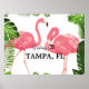 Greetings from Tampa, Florida, tropical design with palm fronds and pretty pink flamingos.