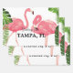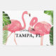 Greetings from Tampa, Florida, tropical design with palm fronds and pretty pink flamingos.