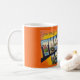 A retro postcard greeting from the Thousand Islands of New York repurposed on a mug.