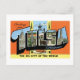 Remember those long road trips when you were a kid? Your little brother wouldn't stop asking, "Are we there yet?". Relive your childhood with this great classic post card from Tulsa, Oklahoma. Retro and awesome, it features the world-famous landmarks of the Oil Capital of the World.