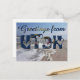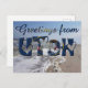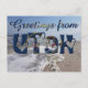 Greetings from Utah State Flag Hearts USA Travel Souvenir You can change or delete the text and the picture of the ocean beach and upload your image instead Tourism Vacation Summer Holiday Greetings Postcard