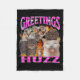 Greetings Huzz Funny Cat Meme Bootleg Graphic Men Fleece Blanket