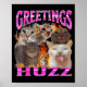 Greetings Huzz Funny Cat Meme Bootleg Graphic Men Poster