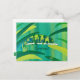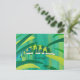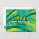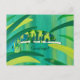 Easily share greetings or your text on these cute chameleon postcards. The chameleon is painted in shades of blue, green, and yellow, in an abstract design. It is crawling across a branch. The background is lighter shades of the same colours. The chameleon is surrounded by wide leaves of similar colours. A template form is provided for your greeting on the front of the postcard. Thank you for shopping at CherylsArt on Zazzle.