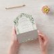 A combined wedding invitation and response card (with meal options). Featuring hand painted snowberries and stems of eucalyptus arranged into beautiful botanical elements and frame against a greige outer and cream inner background. All text is fully editable, and the scattered dots on the front and back can be deleted before ordering if you would prefer. Please view this Collection in my store for versions of this product with alternative wording options, in different colours and for coordinating items.