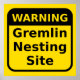 Warning - Gremlin Nesting Site - black and yellow warning sign poster makes a humourous addition to the server room.