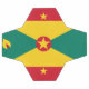 The national flag of Grenada was adopted upon independence from the United Kingdom, 7 February 1974. The six stars in the red border stand for the country's six parishes, with the middle star, encircled by a red disc, standing for the capital, Saint George's. The symbol in the hoist represents a clove of nutmeg, one of the principal crops of Grenada. It also represents a link to Grenada's former name, which was the "Isle of Spice".