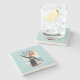 The coasters are gorgeous, a quality feel and heavy weight. They look like a precious archeological find. A rustic stone juxtaposed with a modern floral black and white print. I like the way the print goes slightly imperfect on the cut stone edges giving them a kind-of natural beauty.