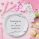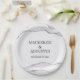 These romantic wedding party plates feature a modern and elegant theme. The names of the bride and groom, or newlywed couple, are printed across the centre which you can change to include your own custom names or text. The wedding date is printed below. An agate stone pattern is printed along the top and bottom portions, with accents of silver glitter. The background is a soft grey colour.