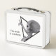This is a standard metal lunchbox that appears to work just fine. We designed this box ourselves with an uploaded photo and custom text on the front and back. It looks absolutely beautiful except the front of the lunchbox is not centered like it shows in the photo. The print borders don't align with the inset flat part of the box where the preview photo online showed it perfectly centered in there. The back looks nice and centered though.