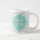 Grey and Aqua Chevron Custom Monogram Large Coffee Mug