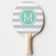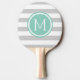 Grey and Aqua Preppy Stripes Monogram Ping Pong Paddle