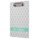 Grey and Aqua Quatrefoil Custom Monogram Clipboard
