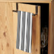 Kitchen towels with grey stripes in four shades of light, dark and black in a simple, classic background pattern.