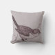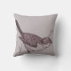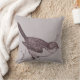 Modern throw pillow features a minimalistic stylised line drawing of a bushtit bird perched on a branch; a design presented in shades of grey with hints of burgundy. The scale and position of the bird allows the drawing to be an off-set focal point of the minimalist design in a complimentary colour palette of grey and burgundy. A simple bird print, with the grey and burgundy artistic design on both sides.