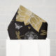 Beautiful hand-drawn flowers of golden grey and white and butterflies on a black background.