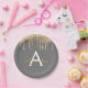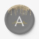 Grey and Gold Glitter Monogram Birthday Paper Plate