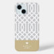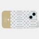 Stylish custom phone case in grey, gold and white colours. This design features a preppy Moroccan trellis pattern. Personalise it with your name monogram or other custom text with a cute heart symbol. Use the design tools to choose any background colours, edit the text fonts and colours and upload your own photos to create a unique one of a kind device cover!