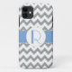 Grey and Light Blue Chevron Striped Monogram Case-Mate iPhone Case