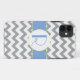 Grey and white chevron striped background with light blue and yellow detailing around the monogram. Customise with your initial(s).