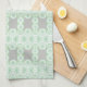 A designer kitchen towel with mint green floral pattern, the light grey background that can be changed to any colour. You can also add a name to personalise for your family or as a custom gift.