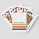 Playing cards featuring three horizontal stripes in dark grey and two shades of orange and your custom name in a bold, modern sans serif font.