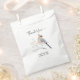 This favour bag can be used for so many different occasions. A delicate bird with soft peach and grey plumage perches gracefully on a snow-dusted branch, its orange beak and feathered crest giving it the gentle charm of a female cardinal. The branch, adorned with white buds and shimmering golden accents, evokes a wintry woodland scene touched by quiet magic. Set against a deep black background, the illustration glows with contrast—each detail heightened, each element artfully composed. The result is a serene, storybook moment captured in rich, painterly strokes, where nature’s stillness meets a touch of elegance. Personalise with your own information.