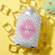 Cute trendy monogrammed can or bottle cooler with a preppy chevron pattern. Personalise it with a custom monogram or other text in a chic quatrefoil frame. Click Customise It to change text and fonts to create a unique one of a kind gift for your bridesmaids and wedding party! Contact me before ordering to customise patterns or design to coordinate with any wedding colours.