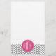Grey and Pink Chevrons with Custom Monogram Stationery