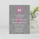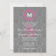 Grey and Pink Damask Monogram Wedding V027B Invitation