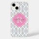 Grey and Pink Modern Trellis Custom Monogram Case-Mate iPhone Case