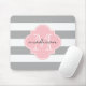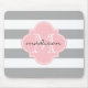 Grey and Pink Nautical Stripes Custom Monogram Mouse Pad