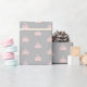 Grey wrapping paper with pink circus tents. This paper is very cute for wrapping your baby gifts.